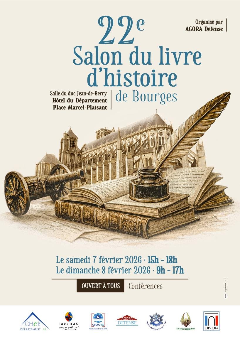 Les Amis du Patrimoine seront présents le Dimanche 8 février 2026 de 9h à 17h au 22e salon du livre d’histoire de Bourges, salle du duc Jean-de-Berry, Hôtel du Département, Place Marcel-Plaisant.